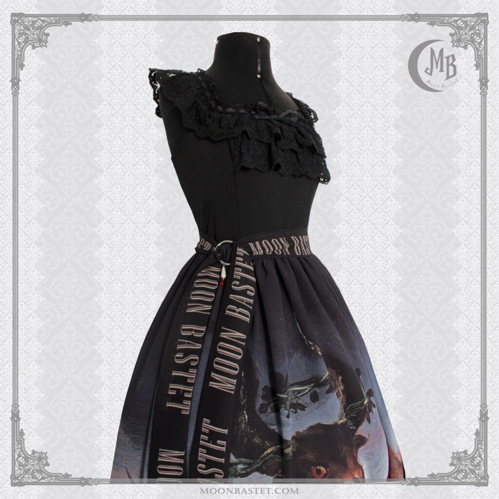 ►{ Goya Jsk } Linen dress with printed French chiffon skirt, embroidered tulle lace with belt.