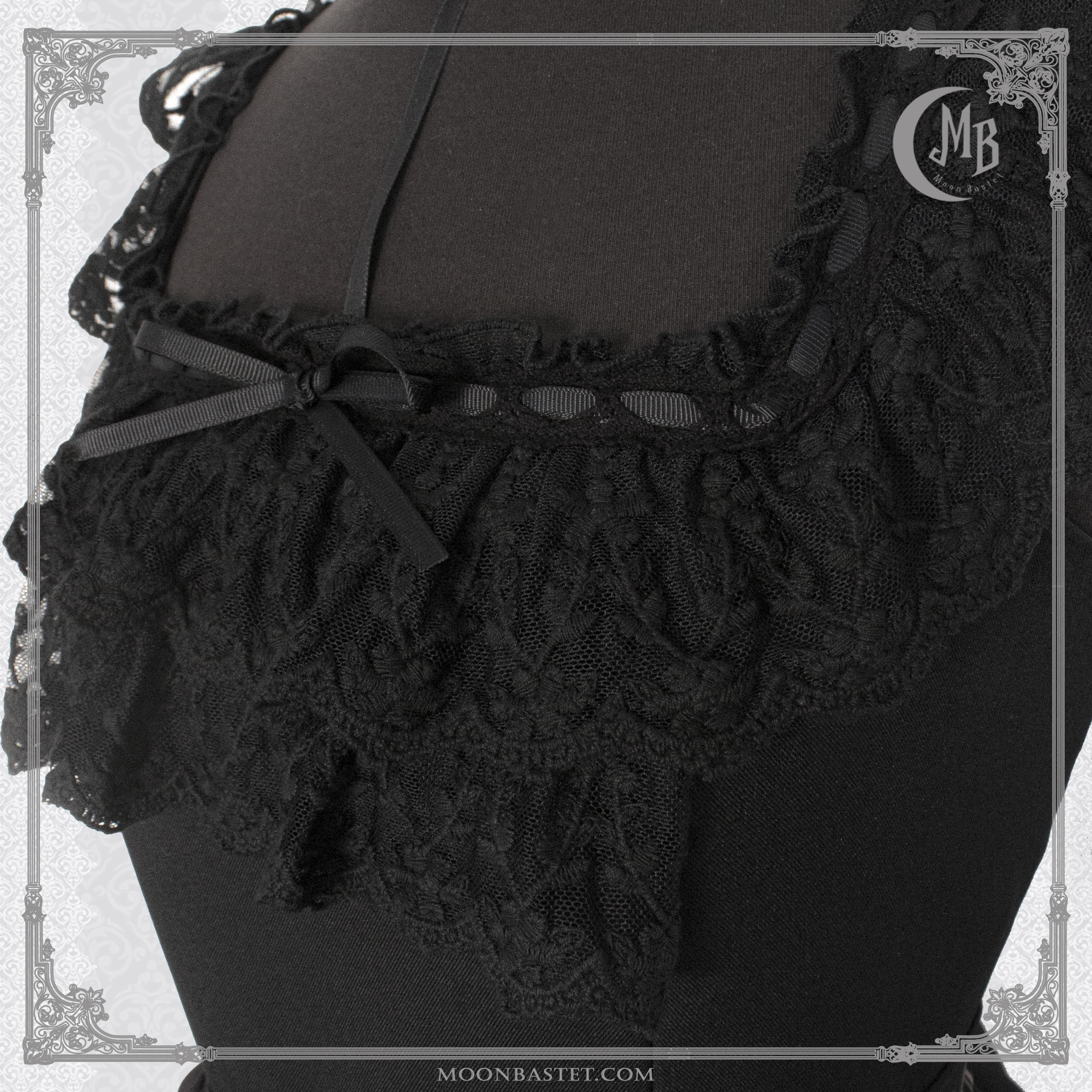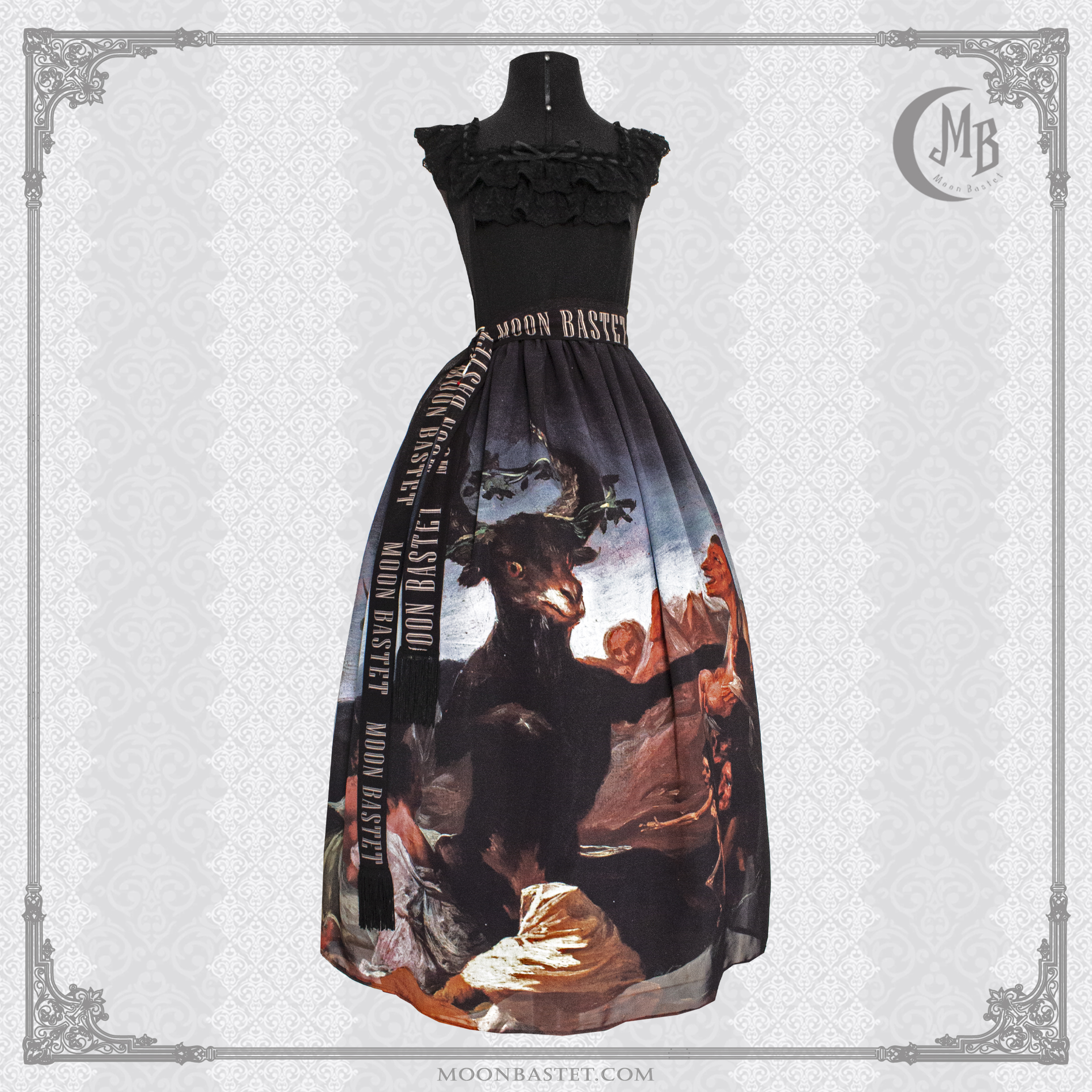 ►{ Goya Jsk } Linen dress with printed French chiffon skirt, embroidered tulle lace with belt.