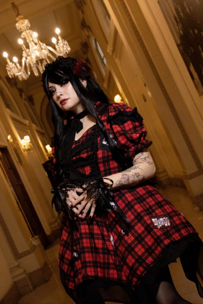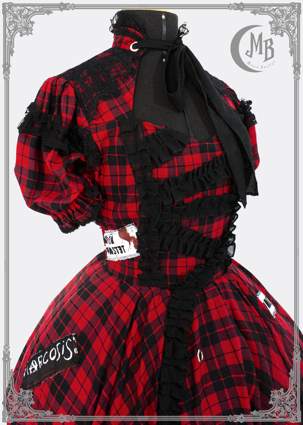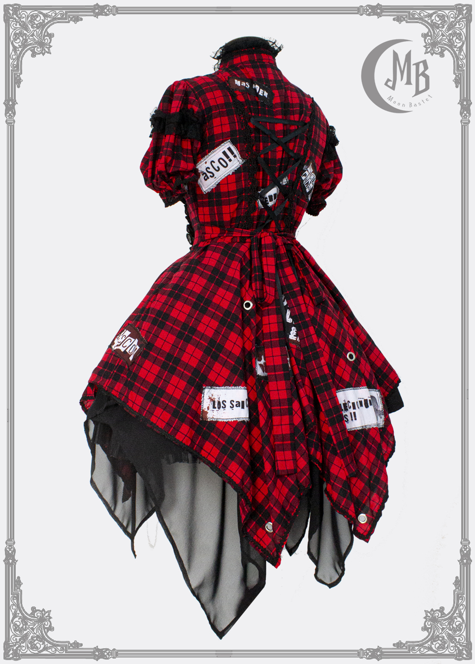 ►{ Saico dress – Op Punklolita } Tartan dress with double French chiffon skirt, lace details and adjustable ribbon at the neck.
