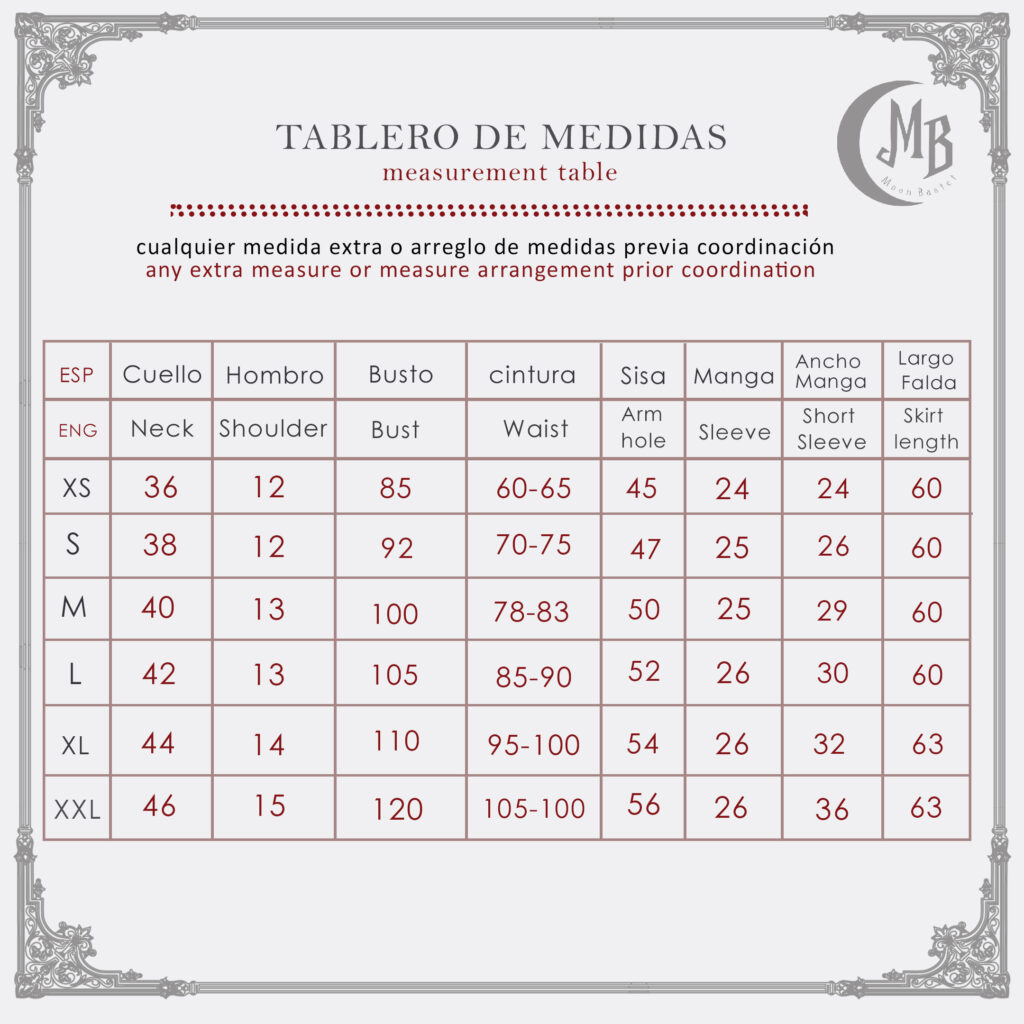| Size | Bust | Waist | Skirt |